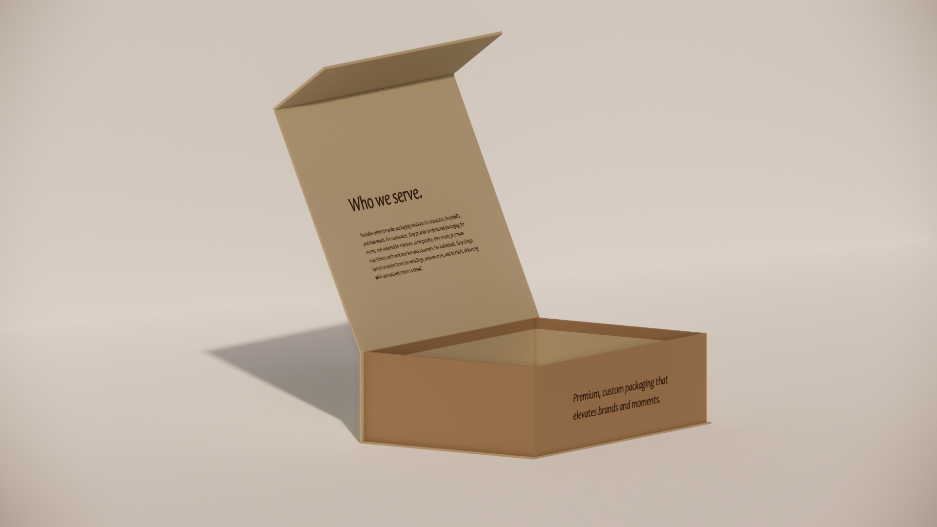 At Packallos, we design premium, compliant, and scalable packaging that elevates your brand, enhances hospitality, and transforms experiences. From boardrooms to ballrooms, our boxes deliver impact without compromise.